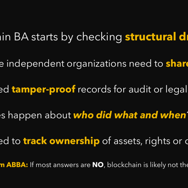 I built a simple Blockchain Discovery Survey + AI BA assistant (ABBA) to help teams answer the real question first: